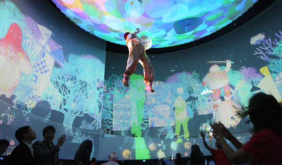 3층에는 1,000여명이 참여해 만든 영상 '아름다운 강산'을 감상할 수 있는 초대형 영상관이 설치돼 있다. 각 층 전시관을 단순히 보고 지나치는 게 아니라 관람객이 직접 애플리케이션을 제작해보고 미디어아트를 자신의 스마트폰에 담는 등의 체험도 가능하다. /유주희기자 ginger@sed.co.kr