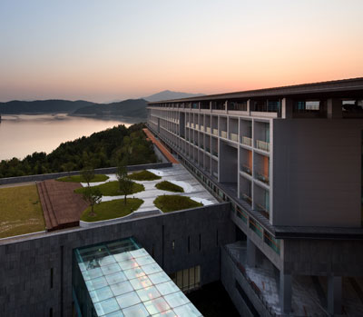 "연수원은 그 기업의 얼굴과도 같다"는 건축주의 뜻이 잘 구현돼 있다. 자연환경을 최대한 존중하기 위해 저층으로 길다랗게 들어선 숙소동과 교육동은 지형에 순응하며 사선으로 교차하고 있다. 교차하는 부분은 열려있는 공간으로 연출돼 다도해의 풍광을 만끽할 수 있다. 숙소동은 숙박객을 위한 다양한 기능으로 구성돼 있고, 교육동은 교육에 적합한 최적의 공간을 제공하고 있다.