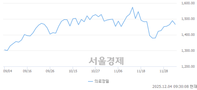 약세업종은 의료정밀업(-1.53%), 건설업(-1.37%), 전기가스업(-1.22%)이며, 강세업종은 운수창고업(+1.82%), 의약품업(+0.48%), 기계업(+0.37%)이다. 수급측면으로는 증권업이 30:70의 매수우위세를 나타내고 있으며, 운수창고업은 67:33의 매도우위세를 기록 중이다.