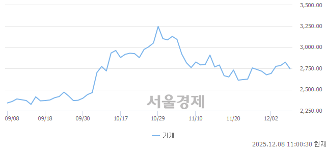 약세업종은 기계업(-2.78%), 보험업(-2.69%), 의료정밀업(-2.09%)이며, 강세업종은 철강금속업(+2.06%), 유통업(+1.27%), 전기전자업(+0.70%)이다. 수급측면으로는 보험업이 17:83의 강한 매수우위세를 나타내고 있으며, 부동산업은 56:44의 매도우위세를 기록 중이다.