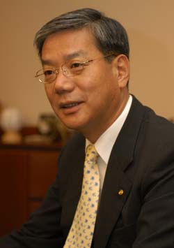 LG카드 인수전 참여가 무산된 우리은행이 카드 부문에서 대규모 사업확장을 추진하고 나섰다. 황영기(사진) 우리은행장은 9일 서울 중구 회현동 본점에서 열린 월례조회에서 “카드 부문 시장점유율이 5.5%에 불과해 다른 영업적 위상에 비해 약하다”면서 “시장점유율이 10% 정도가 돼야 시장의 존재를 느낄 수 있다”고 말해 카드사업 부문의 점유율 배가 전략을 발표했다. 황 행장은 “삼성카드 등 전업계 카드사들이 엄청난 광고비를 쏟아 붓고 있지만 우리카드 광고는 예금보험공사와 맺은 재무개선약정(MOU) 때문에 광고도 하지 못하는 실정”이라며 “LG카드는 주주의 뜻에 따라 포기했지만 뜨거운 애정을 가지고 카드사업을 확장해달라”고 주문했다. 황 행장은 “카드사업은 고객의 소비패턴을 정확하게 알 수 있고 고위험-고수익이 가능한 비즈니스”라면서 “은행에서 1조원의 이익을 내려면 100조원의 자산이 필요하지만 카드사는 10조원의 자산으로 1조원의 이익을 낸다”고 카드 사업 확대의 필요성을 역설했다. 황 행장은 이와 함께 교차판매의 중요성도 강조했다. 그는 “상품 2개를 보유한 고객의 수익성이 1일 때 4개 보유를 하면 수익성이 2배가 아닌 2.6배가 되고 7개 보유시에는 3.5배가 아니라 6.4배로 늘어난다”며 교차판매의 중요성을 강조했다.