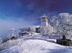 40분간의 하늘 여행 '레인보우 곤돌라' "스키를 좋아하는 아이들이야 신나겠지만 우리 같은 사람이야 무슨 재미가 있겠나." 아이들 손에 이끌려 스키장에 오긴 왔지만 스키 부츠 한번 신어보지 못한 부모들은 영 떨떠름하다. 하지만 용평에서라면 걱정할 필요 없다. 용평 스키장을 '욘사마 스키장'으로 만들며 일본과 동남아에 명성을 떨치게 한 바로 레인보우 곤돌라와 드래곤 피크가 있기 때문. 스키하우스인 드래곤 프라자에서 출발하는 레인보우 곤돌라는 발왕상 정상 부근에 위치한 스위스풍의 아름다운 건물 드래곤피크로 이어진다. 겨울연가 촬영지라는 사실이 알려지면서 용평 스키장의 최고 명소로 떠올랐다. 100대의 8인승 곤돌라가 시간당 1,800명을 수송한다. 발 아래 펼쳐지는 백색 설원의 풍경에 감탄사를 터트리지 않을 수 없다. 드라마 겨울연가에서 멋진 설경을 뽐냈던 곤돌라 하차장 드래곤피크는 유럽 알프스 산장을 연상시키는 3층 목조건물. 이 곳에선 천년 주목의 군락지와 동해바다 일출모습, 대관령 오대산 일대 준봉의 풍경이 한눈에 들어 온다. 용평스키장을 품고 있는 발왕산은 겨울 눈꽃 산행의 대표적인 명소다. 레인보우 곤돌라가 없다면 4~6시간 걸릴 정상까지 산행의 시간은 곤돌라 덕택에 30분이면 충분하다. 강풍 속에 흩날리는 눈가루를 뒤로 하고 정상으로 다가서면 어느새 하얀 눈꽃이 피어있는 주목군락지에 당도한다. 여름철에도 서늘한 날씨 탓에 긴소매 옷이 그리울 정도다. ◇교통 4개 정기 운행사가 매일 용평까지 왕복 운행한다. 정기운행사인 대원고속관광은 잠실역에서 용평까지 버스를 운행한다. 서울 및 수도권에서 출발하는 교통 패키지를 이용하면 리프트 주간권이 무료다. 교통패키지 가격은 기간에 따라 다소 차이가 있지만 보통 5만9,000원정도. 1588-0009 |