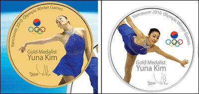 밴쿠버 동계올림픽에서 피겨스케이팅 여자 싱글 금메달을 따낸 '피겨 여왕' 김연아(20ㆍ고려대)를 위한 기념주화가 나온다. 대한체육회(KOC)는 "김연아의 금메달을 기념하고 감동의 순간과 기쁨을 기리기 위해 기념주화를 발행한다"고 5일 밝혔다. 호주의 퍼스 조폐국에서 제작된 주화는 4분의1 온스 금화와 1온스 은화 등 2종이며 앞면에 김연아의 프리스케이팅 경기 장면과 사인, 대한체육회 휘장 등을 넣었다. 이 주화는 오는 8일부터 ㈜화동양행(www.hwadong.comㆍ(02)3471-4586)을 통해 예약판매하며 가격은 금화가 88만원, 은화가 12만1,000원이다.