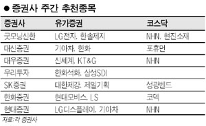 이번주 주간 추천 종목중에서는 NHN이 가장 많은 증권사로부터 추천을 받았다. 주가하락으로 가격 메리트가 큰 데다가 향후 실적 개선이 예상된다는 게 추천사유다. 거래소 종목 중에서는 최근 실적 개선 및 공매도 제한 효과로 주가가 오른 기아차가 복수의 증권사로부터 추천을 받았다. 또 한화와 한화석화도 실적 개선과 대우조선 인수 관련 불확실성 해소 등의 이유로 추천종목에 이름을 올렸고 현대모비스와 LS도 실적호전주로 주목을 받았다. NHN은 대우증권, 현대증권, 굿모닝신한증권으로부터 이번주 관심 종목으로 꼽혔다. NHN의 최근 주가는 15만원 선으로 최근 6개월동안 40% 이상 하락한 상태다. 3ㆍ4분기 실적악화와 향후 경기 침체 여파에 대한 우려가 컸기 때문이다. 그러나 악재가 주가에 충분히 반영된 데다가 앞으로 수익성 개선이 예상된다는 게 증권사들의 전망이다. 대우증권은 “직영 C2C(소비자와 소비자간 거래) 진출은 광고주 수를 크게 증가시켜 현재 2%에 불과한 마진율을 극대화 시키는 계기가 될 것”이라고 평가했다. 또 현대증권도 “최근 주가 바닥권에서 기관 매수세가 이어지고 있어 주가 강세가 예상된다”고 내다봤다. 기아차도 주간 관심 종목으로 이름을 올렸다. 기아차는 그동안 외국인들의 공매도가 집중됐던 종목 중 하나다. 대신증권과 현대증권은 10월 중 실시될 공매도 제한 조치에 따른 일시적인 수급 개선이 예상되는 데다가 실적 측면에서도 신차 ‘소울’이 호평을 받고 있는 점이 투자 포인트라고 밝혔다. 한화와 한화석화는 10월중 결정될 대우조선해양 인수 우선협상대상자 선정과 관련해 주가 변동성이 커질 것으로 예상된다. 대신증권은 “그동안 한화 계열회사들의 주가를 짓눌러 왔던 M&A 관련 불확실성이 해소되면 주가 할인 위험이 크게 완화될 전망”이라고 분석했다. 또 우리투자증권은 한화석화가 미국 다우케미컬의 생산중단으로 촉발된 가성소다의 가격 강세와 중국 PVC업체들의 경쟁력 부진에 따른 PVC사업부 실적개선으로 3ㆍ4분기 영업이익이 호조를 띌 것으로 예상했다. LS는 3ㆍ4분기 실적 호전이 예상되면서 주목받는 종목이다. 한화증권에 따르면 LS는 카타르 초고압 전력선 공급에 따른 매출이 본격적으로 발생하는 등 고부가가치 사업인 전력선 부문의 성장으로 수익성이 급격히 개선되고 있다. 한화증권은 3ㆍ4분기 매출액과 영업이익을 전년 동기대비 각각 16%와 90% 늘어난 8,698억원과 417억원으로 예상했다. 또 해저케이블 사업도 향후 성장동력이 될 것으로 전망했다. LS는 현재 동해항 인근 송정산업단지에 총 1,300억원의 해저케이블 공상을 건설중이다. 이밖에 코스닥 종목중에서는 코덱, 현진소재, 포휴먼, 성광벤드 등이 주간 추천 종목으로 꼽혔다. 코덱은 일본 NEC사외 DID용 모니터 계약을 체결한 점이 투자 포인트로 부각됐다. 한화증권은 “산업용, 광고용 디스플레이인 DID용 모니터 시장은 아직 초기 단계로 향후 성장성이 매우 크다”며 “DID 부문 세계 1위 업체인 NEC사와의 계약을 통한 시장 선점효과가 기대된다”고 밝혔다. 성광벤드는 산업플랜트 관련 7~8월 신규 수주가 급증해 외형 증가 및 고수익 지속 전망으로 현진소재는 풍력부품 수주가 크게 늘어난 점이 투자 포인트로 꼽혔다.